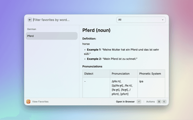 A simple Raycast extension to look up words and save definitions to a list of favorites.