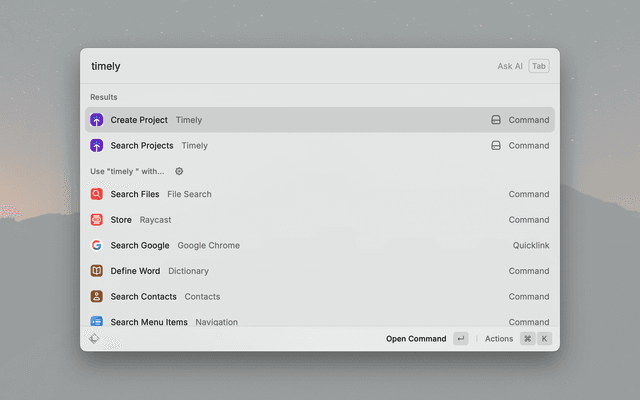 • Create Projects – Create new projects without leaving Raycast