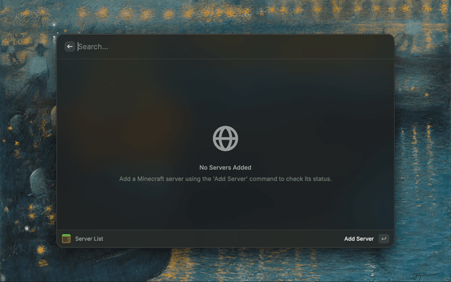 Quickly check the status, MOTD, version, latency, player count, and list of players (when available) of Minecraft servers! Supports Java and Bedrock servers.