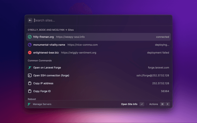 A command center for sites managed by Laravel Forge.