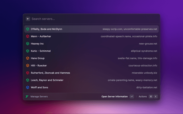 Search and open database connections in TablePlus