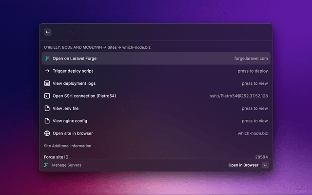 Source repo: https://github.com/KevinBatdorf/laravel-forge-raycast