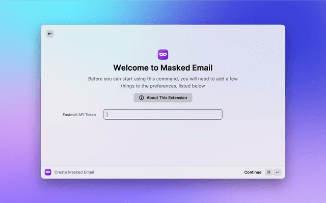 You will need to create a Fastmail API token with the Masked Email capability