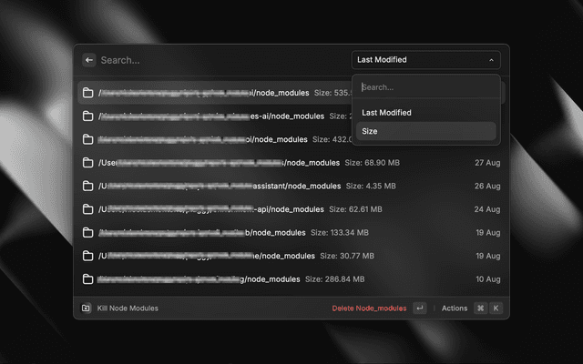 • Quick Deletion: A simple action to delete selected node_modules folders.