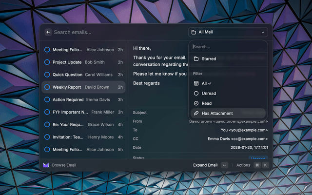 • Expanded Email View - Read emails in full-screen with metadata sidebar