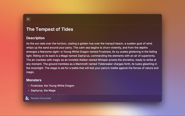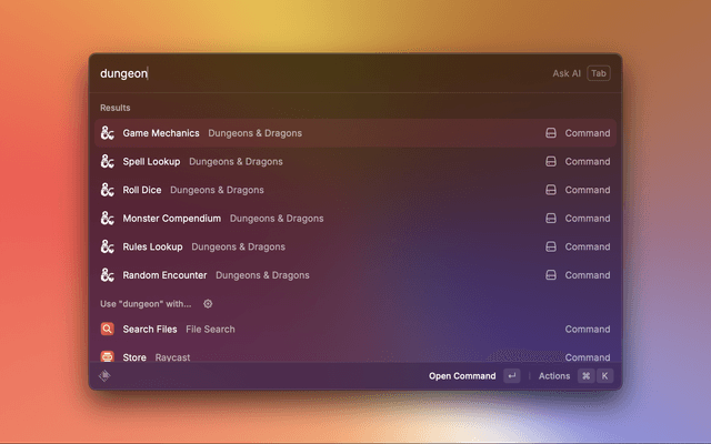 • Random Encounter - Generate party encounters based on levels and location. Requires Raycast AI.