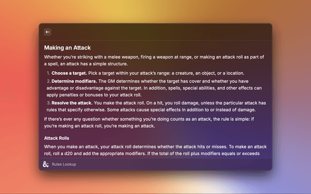 • Rules Lookup - Access over 30 D&D rules categories.