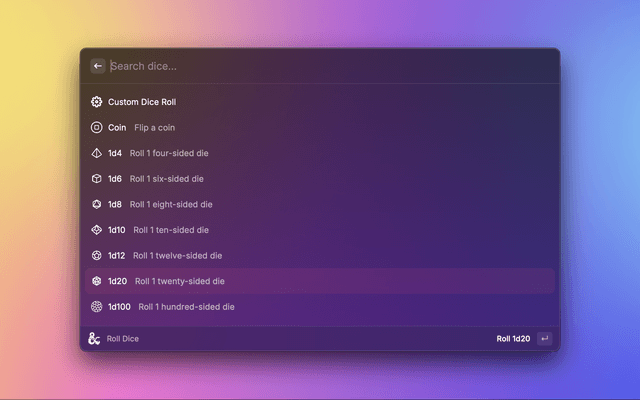 • Roll Dice - Flip a coin or roll various dice types and custom rolls.