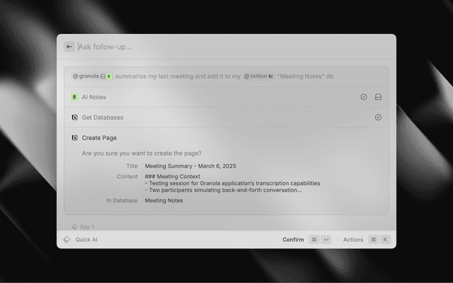 • AI Notes - Use Raycast AI on top of Granola and other AI extensions