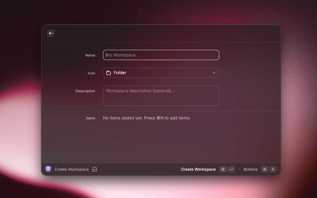 List and launch your workspaces. Simply search for a workspace and press Enter to open all its items.