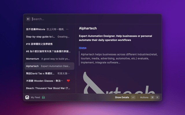 Integrate bookmarks from Brave, ChatGPT Atlas, Chrome, Dia, Edge, Firefox, Safari, Arc, Vivaldi, Vivaldi Snapshot, Zen, Whale, or Helium.