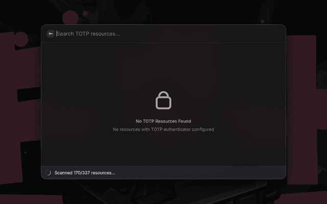 The Authenticator view scans all resources in your vault, decrypts their secrets, and extracts TOTP configurations stored in the following format: