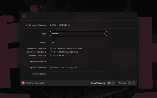 • Passphrase: Stored securely in Raycast's encrypted preferences