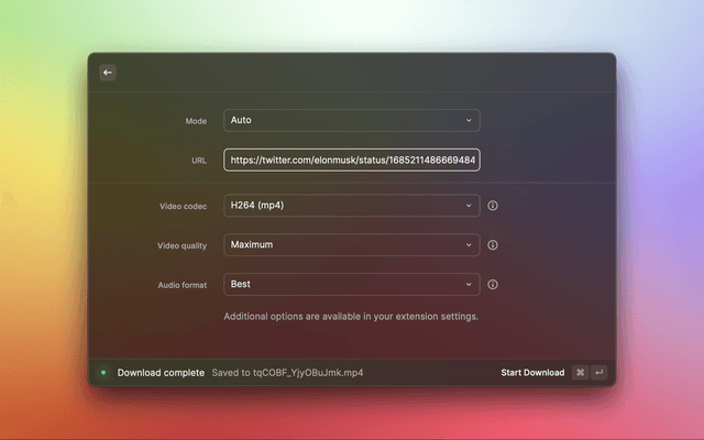 A Raycast extension that allows you to easily download videos & audio from popular social media platforms, powered by cobalt's API. A list of supported services can be found here.