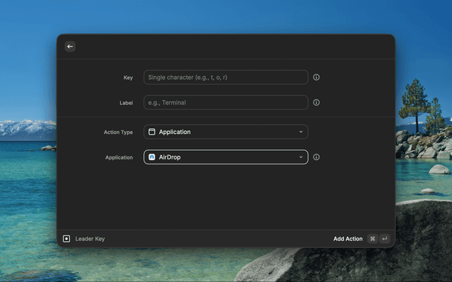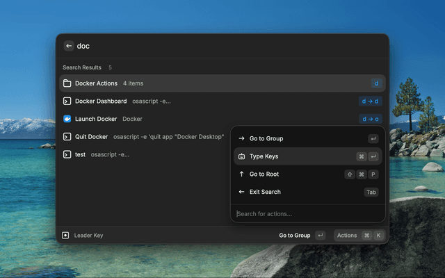 Vim-style leader key for launching apps, running commands, and triggering actions with key sequences