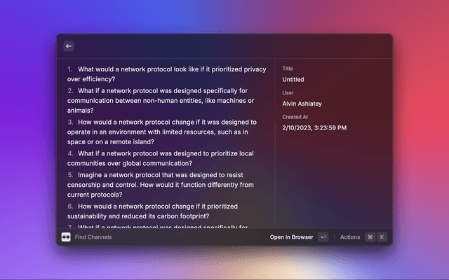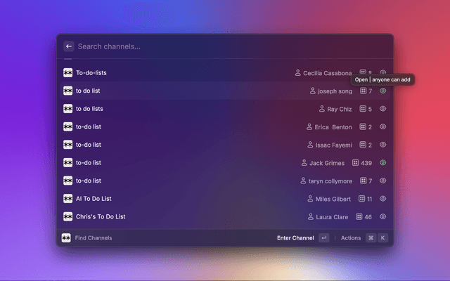Quickly search for Are.na channels using Find Channels with: