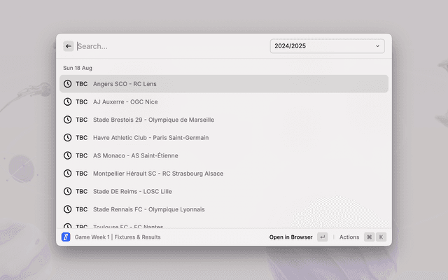 View all the latest news about Ligue 1 McDonald's (calendar, results, ranking, video...) and all live games in Raycast