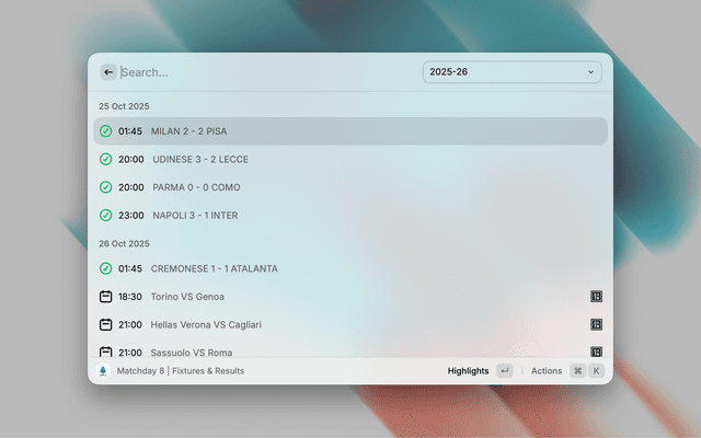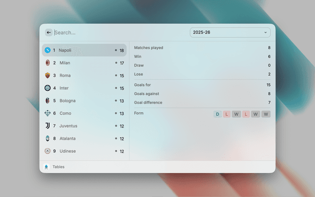 - Fixtures & Results: View upcoming fixtures, recent results, and live match updates for all Serie A games.