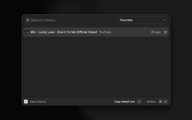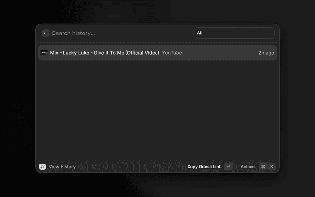 Get an Odesli link for the currently copied link of a song/album. Odesli is a service that provides smart music links. These links show a list of platforms you can hear the song/album on.