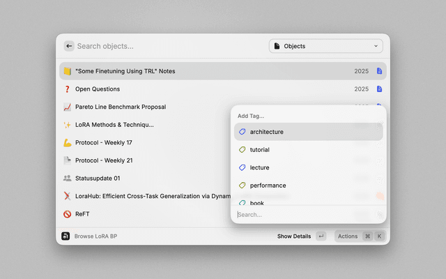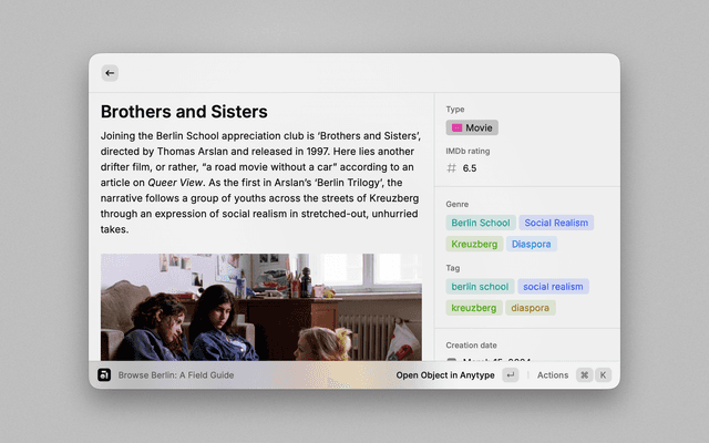 - Interact: Press Enter to view the object in Raycast or Command+Enter to open it in Anytype.