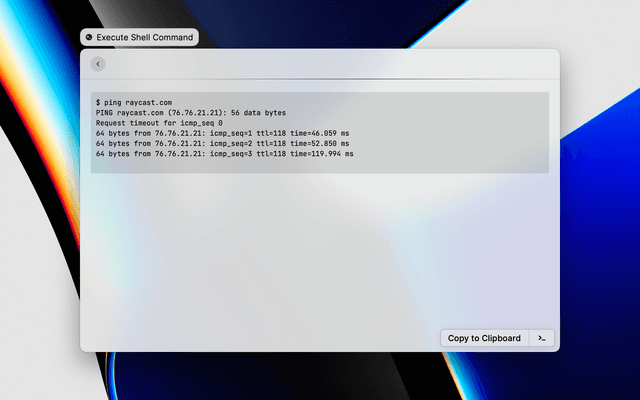 Run shell commands from Raycast