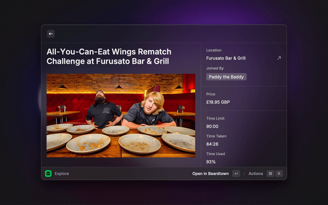 Challenge stats and info about Beard Meats Food, the UK's hairiest competitive eater.