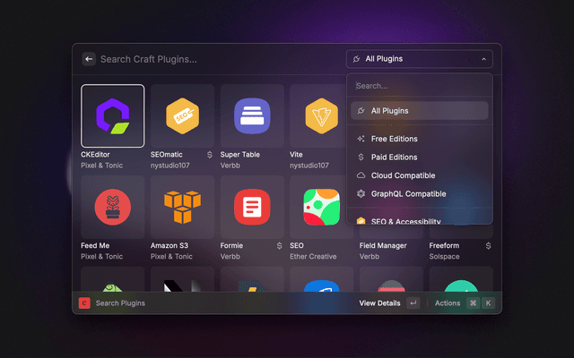 Browse and search the Craft CMS plugin store.