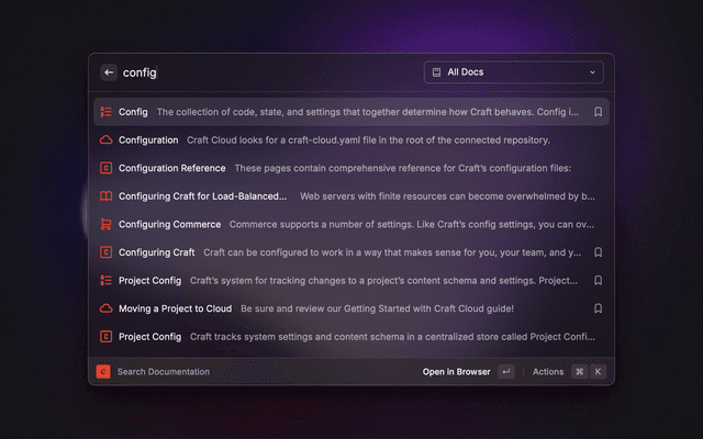 Choose which Craft CMS documentation version to use when searching the CMS and All Docs sections.