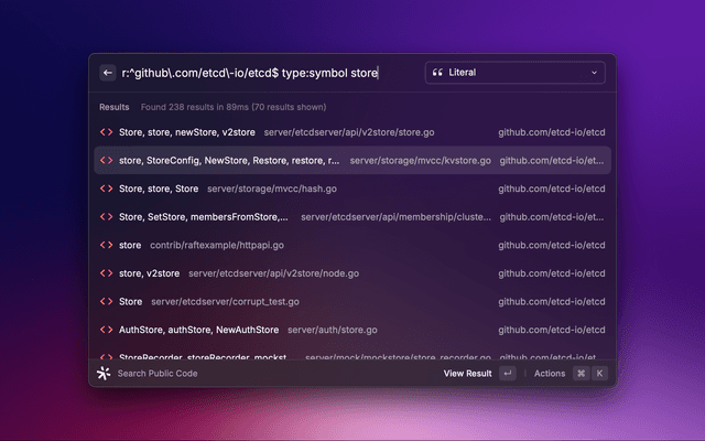 Get results as you type on code search over your code and many public repositories.