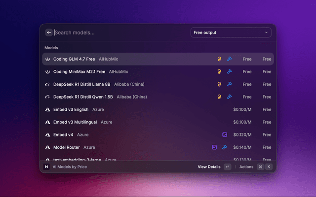Filter models by multiple capabilities at once (e.g., reasoning + vision + tool calling).