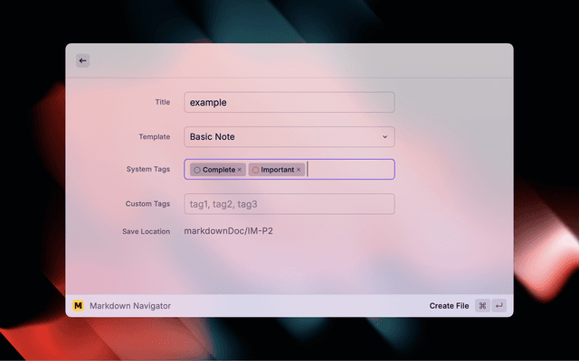 ⌘ + N while browsing to create a file in the current contextSmart Tag Extraction: Tags are automatically extracted from: