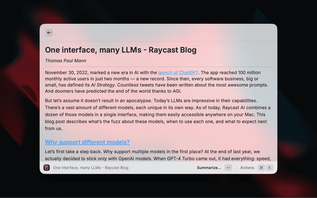 Read the web distraction-free in Raycast.
