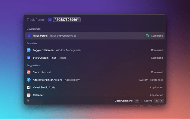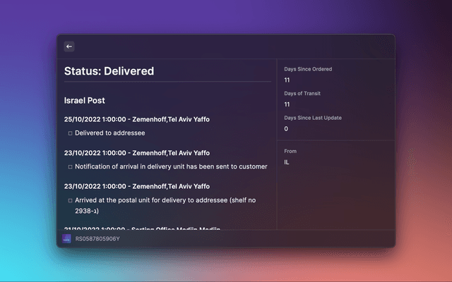 A Raycast extension that allows you to track your packages using 17track's REST API.  All supported agencies are those of 17track.