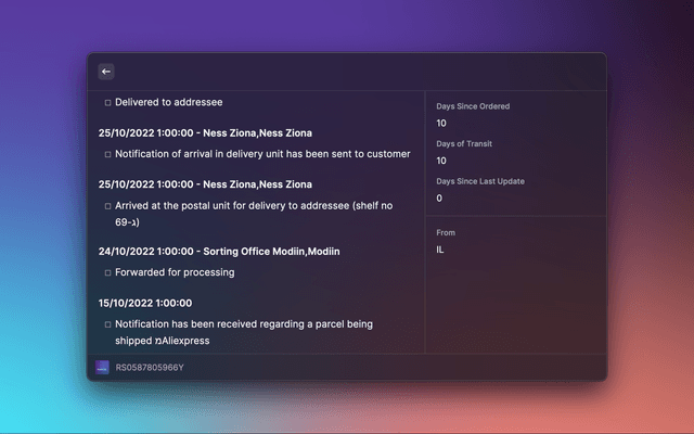 - Allows you to track your parcels and packages using 17Track's API