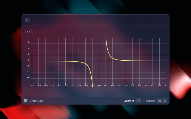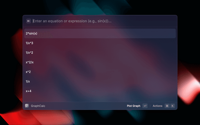 GraphCalc is a versatile graphing calculator extension that enables users to visualize mathematical expressions dynamically. With GraphCalc, you can effortlessly plot functions, equations, and data points directly within the Raycast interface.