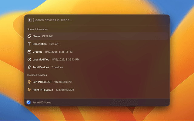 - Open Raycast and search for "Control WLED Devices"
