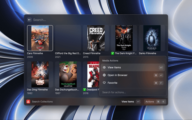 This extension aims at adding support to find Collections, Movies, Shows, Scheduled Tasks, and Recent Sessions on your Jellyfin instance.
