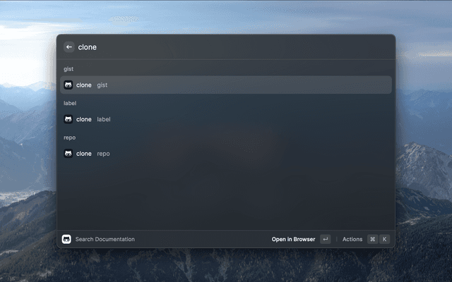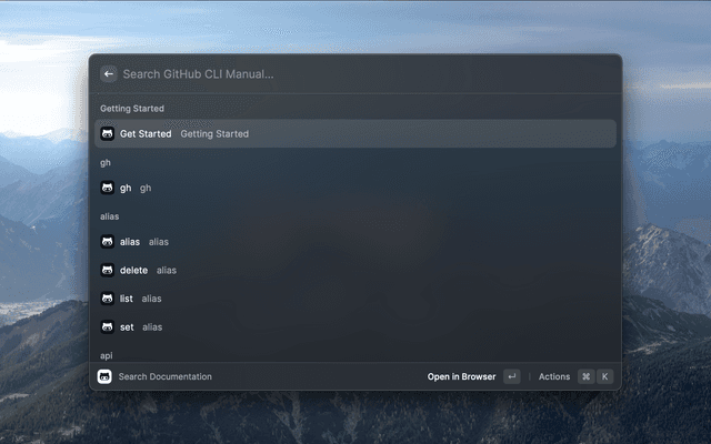 Raycast extension to search GitHub CLI Manual.