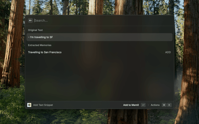 Mem0 is a self-improving memory layer for LLM applications, enabling personalized AI experiences that save costs and delight users. This extension lets you store and retrieve text snippets using Mem0's intelligent memory system.