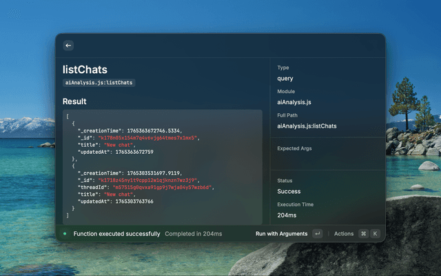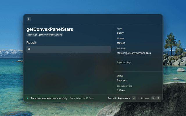 Search and execute your Convex queries, mutations, and actions: