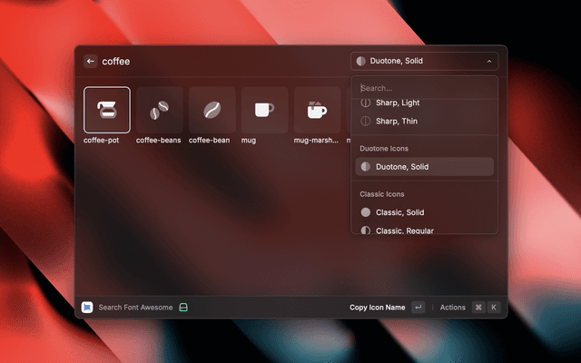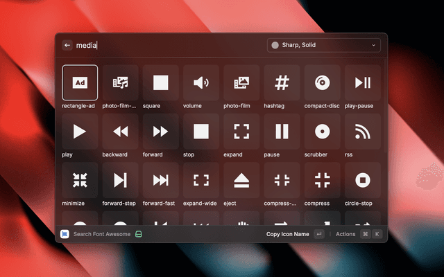 The Font Awesome extension let's you search all the free and pro icons available in the latest Font Awesome v6.7.2 release.