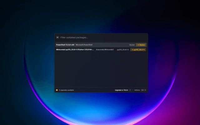 Search, install, and upgrade Windows packages directly from Raycast using Windows Package Manager (winget).