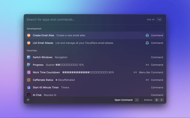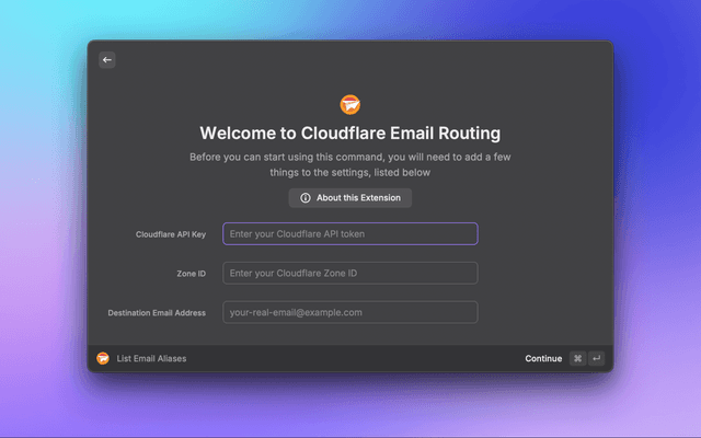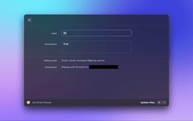Create, list, edit, and delete Cloudflare email aliases directly from Raycast.