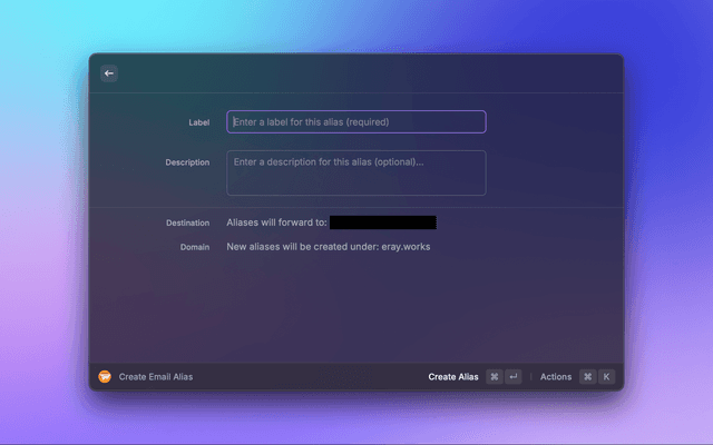A Raycast extension that allows you to create, list, edit, and delete Cloudflare email aliases directly from Raycast.