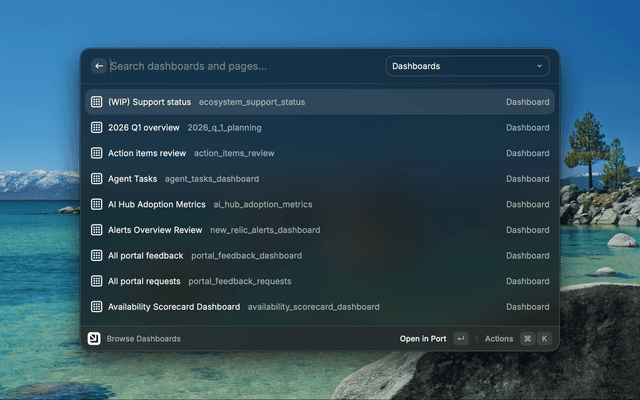 Access your Port internal developer portal directly from Raycast. Browse dashboards, run self-service actions, search your software catalog, and ask Port AI questions.