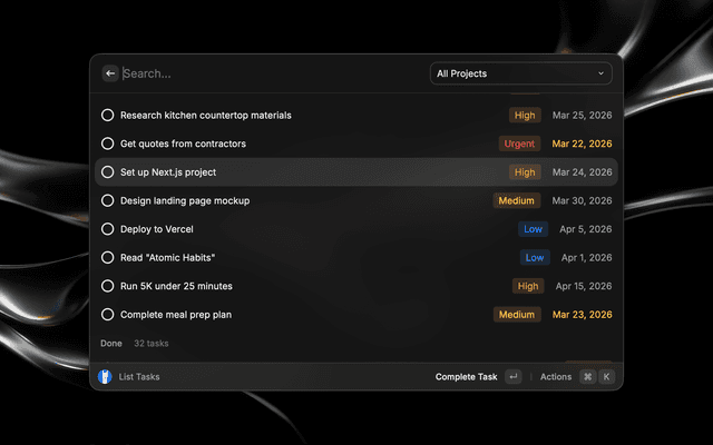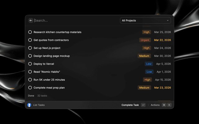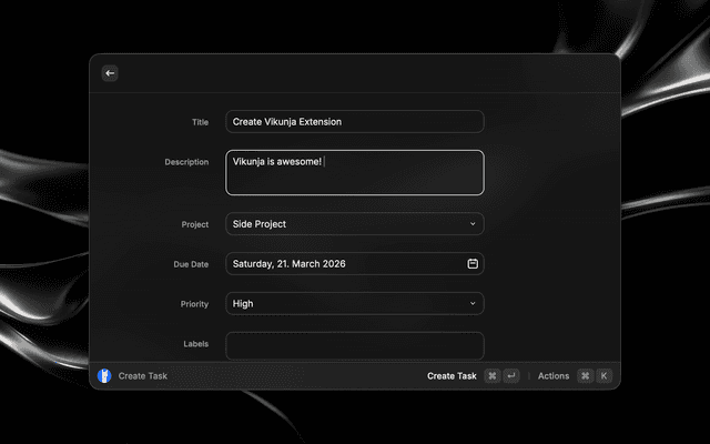Create and manage tasks in your self-hosted Vikunja instance directly from Raycast.