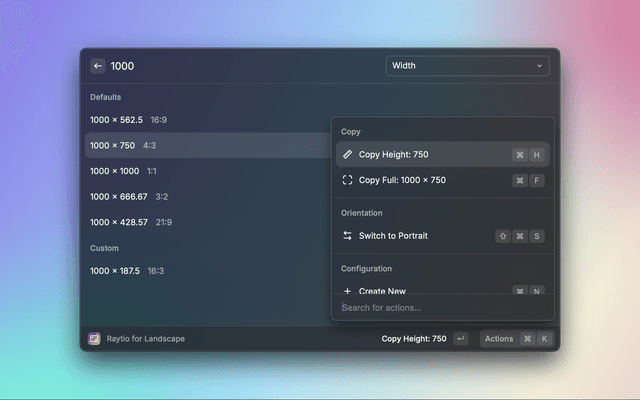 Calculate easily the aspect ratio for different sizes based on a width or height.