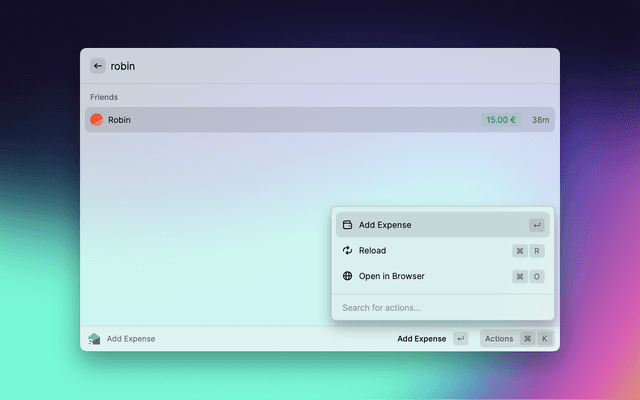 Effortlessly create, search, and modify your expenses with the Raycast extension for Splitwise!