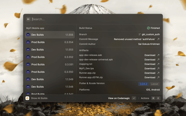 Due to the limitations of the Codemagic API, Only the Flutter builds which are configured with the workflows are supported. I'm working on adding support for other types of builds as well.