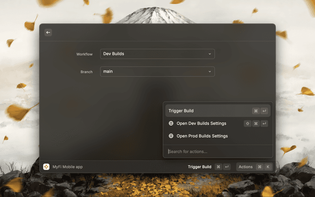 • Select the app you want to trigger a build for, Select the branch and the workflow and trigger the build.